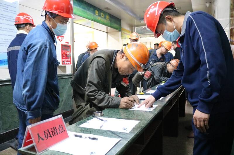 10点48分,86名井下职工严格按照正确撤离路线,紧张有序撤离,以最快的速度安全升井。