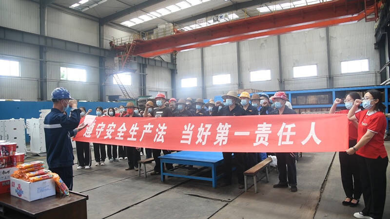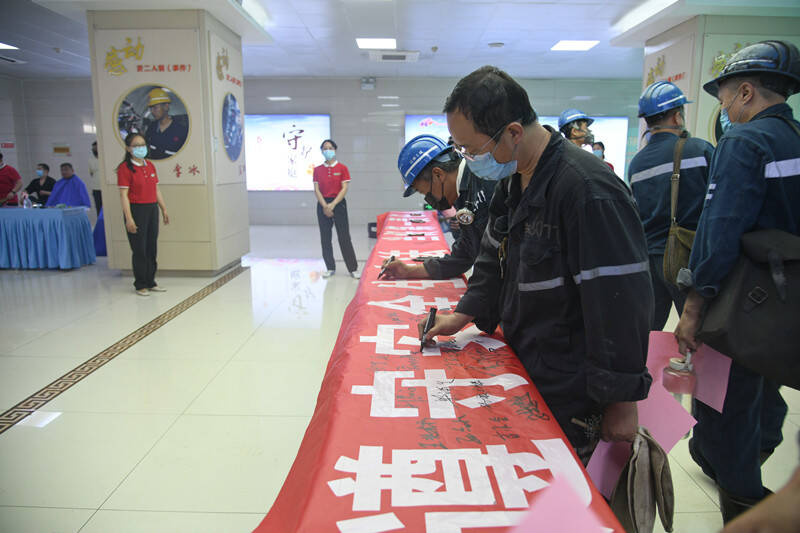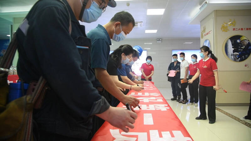 现场职工在“遵守安全生产法 当好第一责任人 ”横幅上郑重签字承诺。