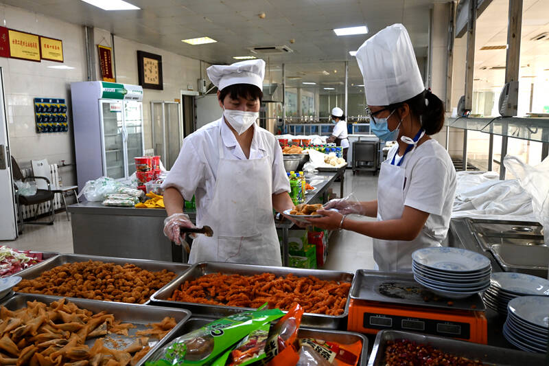 在餐厅里,他们打扫卫生、协助打包,用热情的微笑和服务迎接每一位职工,“来了大学生之后,食堂的精神面貌也焕然一新。”井口食堂负责人王智强夸赞到。