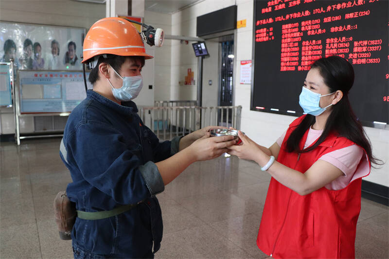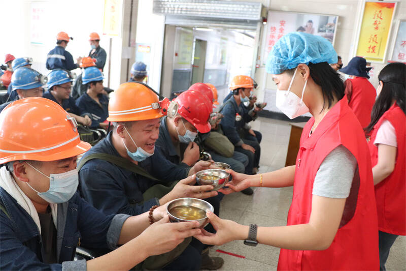 “趁热喝,小心烫”“做好防护,保重身体”“下井注意安全,做好防护”……志愿者们的问候承载着矿党政对一线职工的浓浓关怀。