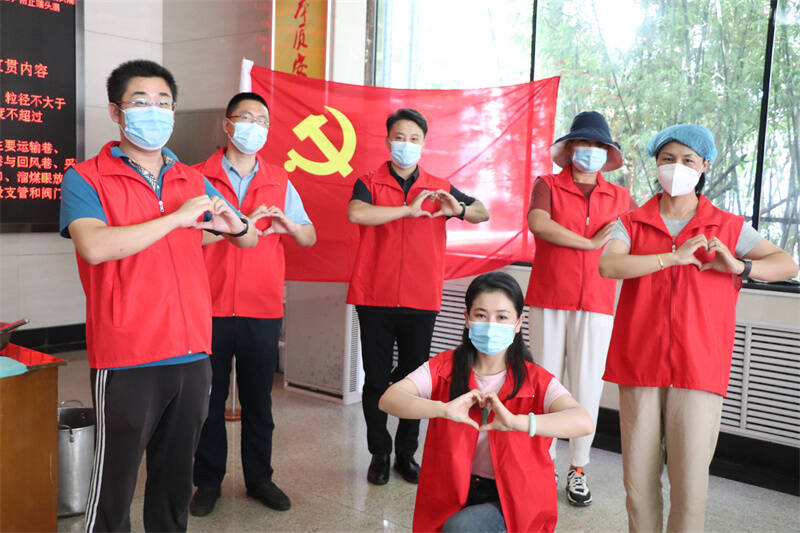 近日,杨村煤矿组织志愿者到井口开展志愿服务,党员带头为一线职工送去暖胃姜汤。