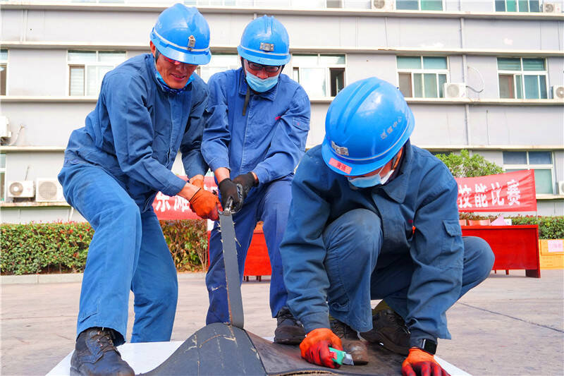 此次比赛模拟皮带接头硫化全过程,要求参赛选手在规定时间内按照赛前检查、划线、割线、剥层、打磨等顺序完成硫化接头作业。