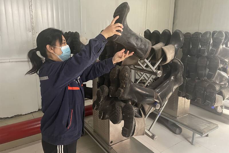 如何将带有余热的废气加以利用?他们集思广益,积极进行技术创新,通过在管道处加装空气滤清器,将含有杂质的空气过滤净化后,经风道流至烘靴机上方各支管处,用于胶靴烘干,出风口温度达到28.5℃左右,出风量较大,胶靴烘干效果显著。利用回收烘干机废气能量替代原电力加热系统,既节约了电力消耗,又节约了材料费用和人工维修成本费用。