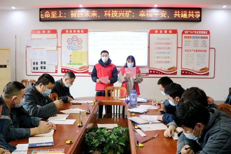 近日,杨村煤矿组织“百灵”宣讲队开展“学习党的二十大、同舟共济筑防线”专题宣讲进区队活动,为连续留矿在岗的广大职工加油打气,动员全矿上下站位再提高、思想再统一,增强战胜疫情的信心,提振连续作战的精气神。