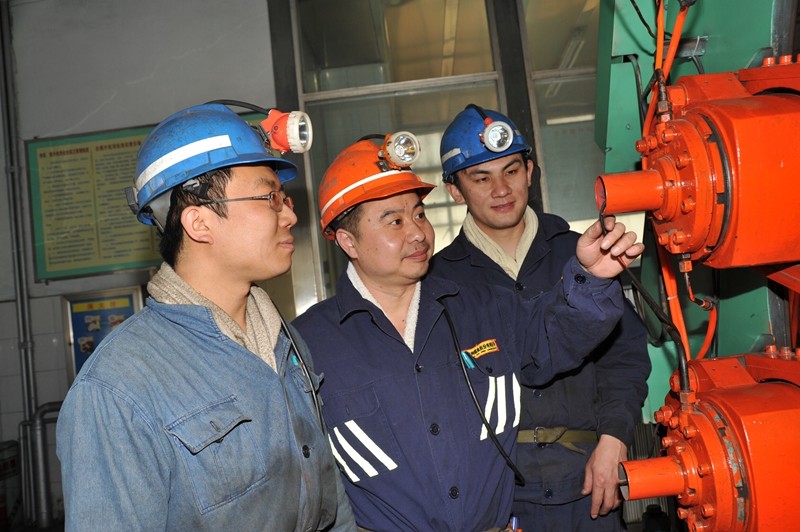 此时正值副井单双罐操车系统改造的关键时期,老郭主动请缨带领班组历经两个多月的时间硬是啃下了这块硬“骨头”。“骨头”是啃下来了,可他却病倒了,刚刚出院的他,就已经忘记身体还没恢复,又开始带领班组成员置身于副井单罐电控系统改造,白天维护、准备材料,晚上利用大师工作室,对矿机电专业的青年工人进行培训,让他们掌握PLC控制器和变频器应用技术和使用方法,他要尽快把所领悟到的技艺传承下去。