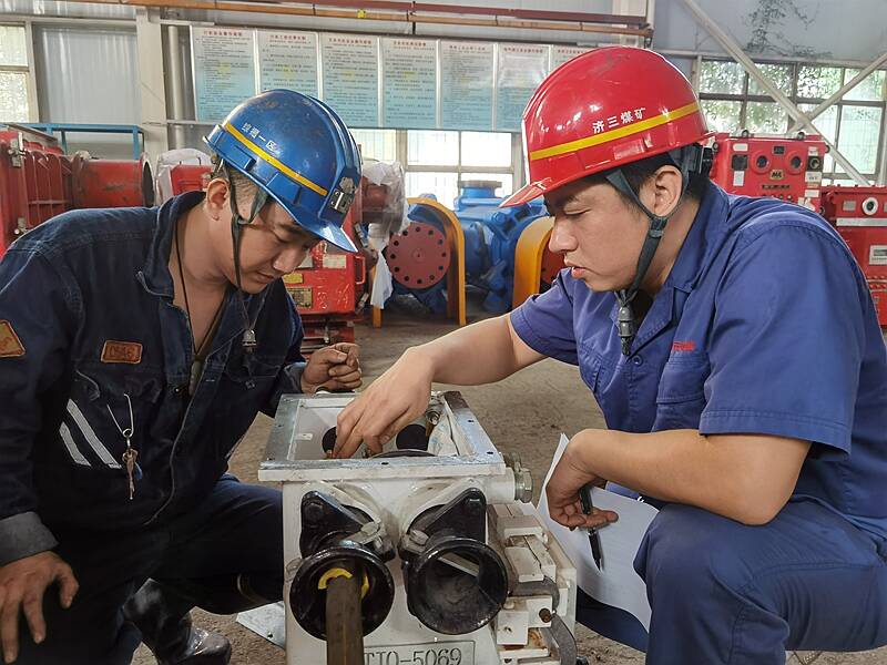 济三煤矿机电专业在提高队伍技术素质和实操能力上下功夫、想办法,组织全矿13家单位,利用120磁力启动器,针对“井下开关压接线工艺”进行“真枪实弹”练兵,优化工艺、提高标准,解决井下开关接线问题较多、标准不统一等问题。