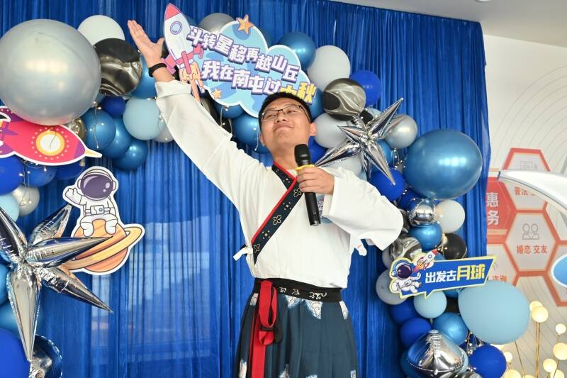 活动中,部分青年职工代表来到暖心志愿者精心布置的“奋斗者号空间站”,对自己的“山丘”和“星辰”进行了即兴演说,用热情和活力诉说着他们对现实工作的感受、对未来的期待与向往,并相互分享了家乡别样的中秋习俗。在歌曲串烧环节,大家轮番接唱,用歌声抒发了对矿井的祝福和美好的愿望。