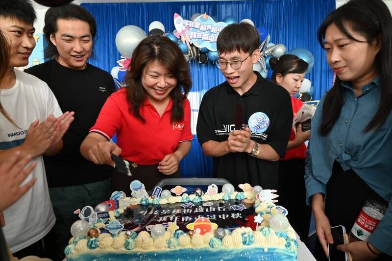 暖心志愿者精心准备的“入职周年”惊喜蛋糕,更是让在场青年职工感动不已,伴随着花好月圆夜的歌声,现场洋溢着和谐、喜庆、欢快的浓厚气氛。