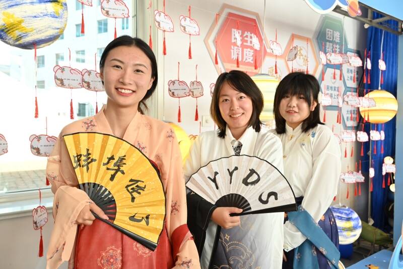 有传统节日的汉服穿搭,也有科技感爆棚的月球舞台,还有不一样口味的月饼及香甜可口的蛋糕,如此“混搭”的中秋活动是不是特别吸睛?