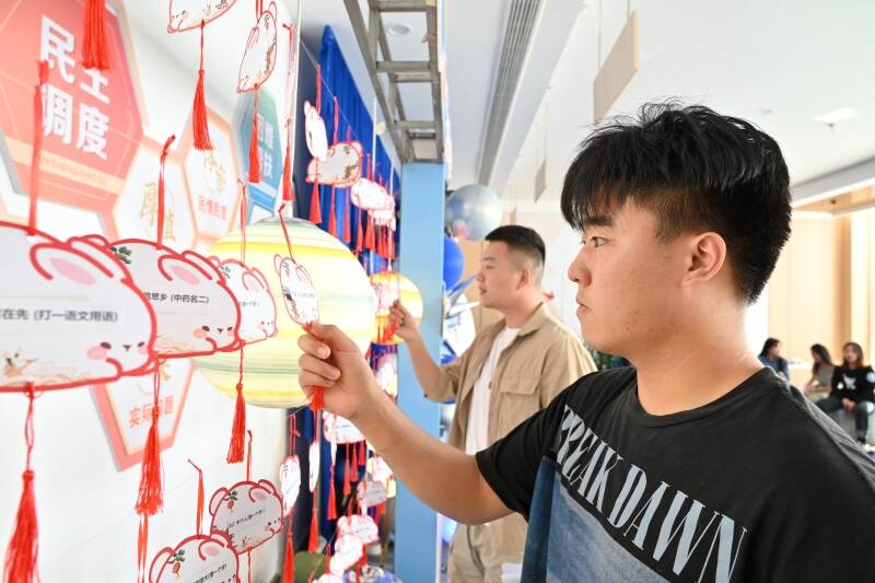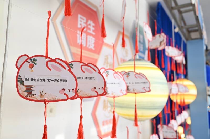 在飞花令诗文接龙游戏中,大家聚精会神踊跃抢答,展现出了青年职工丰富的知识储备和文学素养。在随后的猜灯谜环节更是高潮迭起,笑声不断。“一人一张口,下面长只手”“皇帝新衣猜一字”......大家时而低头思索,时而争先抢答,现场氛围热烈。