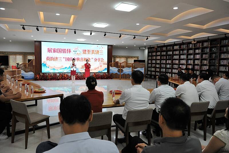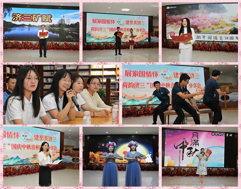 金黄月洒满团圆情,中国红盈满爱国心。9月22日,济三煤矿新时代文明实践中心内朗诵声、歌唱声、欢笑声此起彼伏,在中秋国庆佳节来临之际,荷韵济三举办“展家国情怀 建至美济三——国庆中秋喜相逢”分享会,传承中华优秀传统文化,弘扬民族精神,凝聚奋进力量。