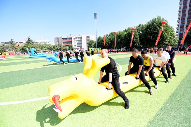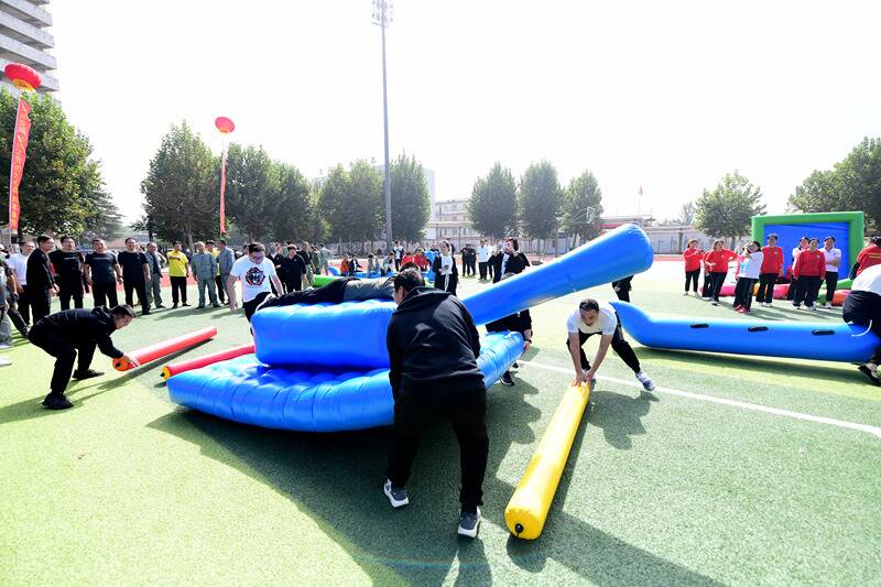 障碍接力赛、铁甲战车、俄罗斯方块、连体裤竞速、旱地龙舟……趣味运动赛场气氛紧张而又兴奋,高潮迭起,精彩频现。参赛队员团结协作、凝心聚力,奋勇争先,竞相发挥各自的特长,比技巧、比团结、比毅力,尽情挥发比赛的激情,充分展现出广大职工同心同向、团结奋进的精神面貌。
