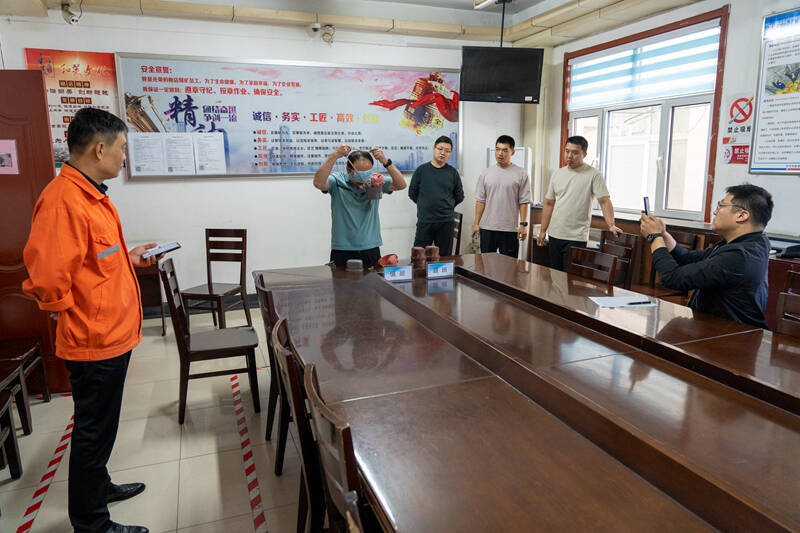 “请展示一下自救器使用方法,戴好后现场走两步,30s计时开始……”这是鲍店煤矿自救器实操考核的一幕。该矿随机抽取下井作业人员进行自救器抽考,现场操作,现场发现问题,现场改正,保证抽查一个合格一个。