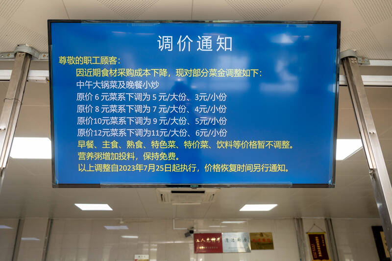“因近期食材采购成本下降,现对部分菜金调整如下“原价6元菜系下降调为5元/大份、3元/小份”……