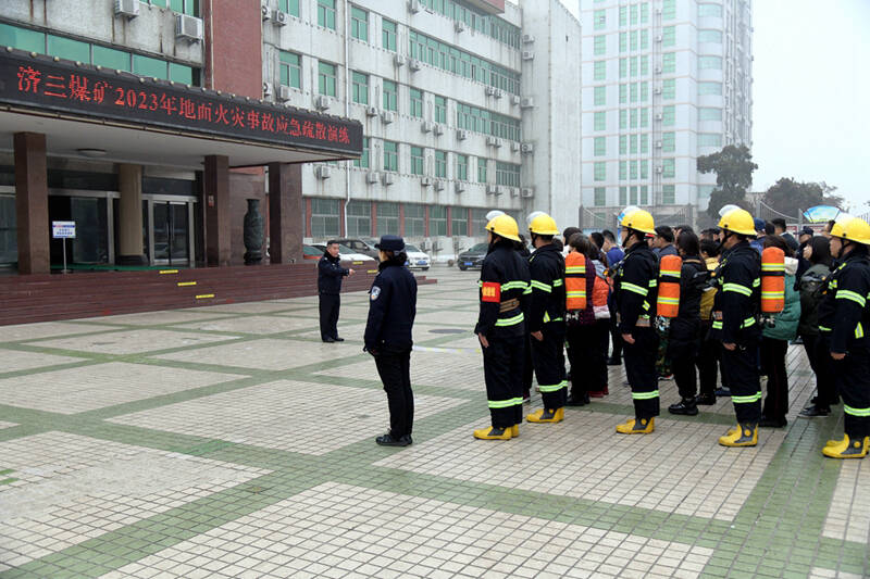 12月29日上午10时, 随着消防监控室自动报警系统一阵急切的警铃声,济三煤矿迅速展开2023年地面火灾应急疏散演练。