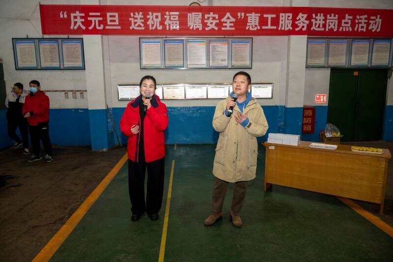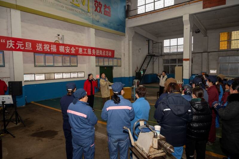 2023年12月29日下午,鲍店煤矿在生产服务中心机修厂车间,举办“庆元旦送祝福嘱安全”惠工服务进岗点活动。