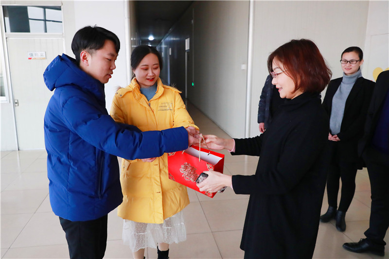 去年4月,在“缘自东滩,梦想起航”相亲成功的通防工区技术员刘渠与鲍店矿的王辰昊,在登记结婚那天,小两口专门来到工会送喜糖。