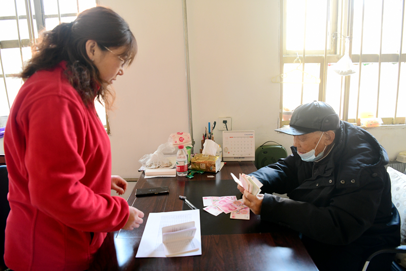 2月3日这一天早上,92岁高龄的陈宝玉拄着拐杖独自来到离退中心,积极地向党组织交纳党费。