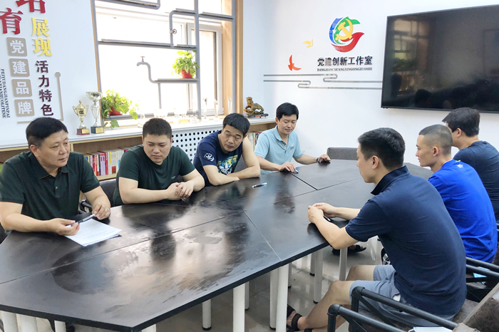 (综采二区党支部书记赵如才定期和班组成员进行座谈交流)