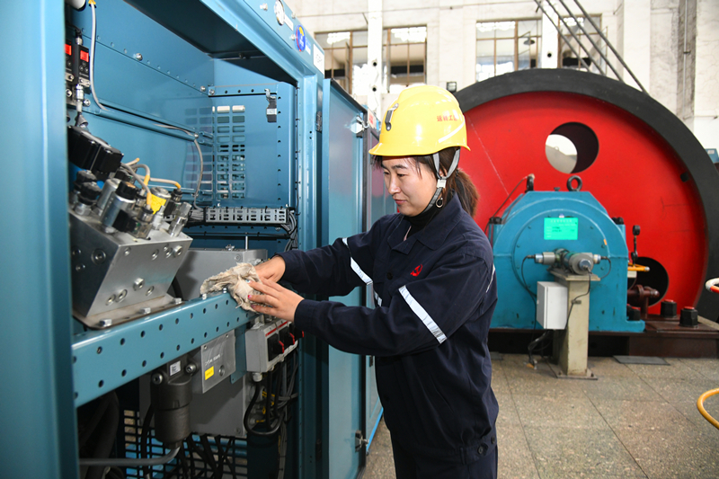 为了确保“心脏”部位健康、安全运转,不论酷暑严寒,还是炎炎夏日,副井提升机司机每个班巡检次数都要在8次以上。高压室、低压室、变压器室、风机、液压站等,各类大功率电机、精密仪器、运转部件要逐一排查填写记录。一楼、二楼、地下室,每个角落,每次巡检都要做到耳聪、目明、手到,绝不放过任何“蛛丝马迹”,来不得半点疏忽。班长孙玉萍在巡检中发现油迹,就先用面纱把油擦干净,再用卫生纸全面仔细擦拭干净,通过勤观察找到漏油点和原因,保证了设备正常运行。在她的带领下,该班组的所有员工,在经过长时间的摸索后,通过“听、看、摸”等手段,都可判断并调节每台设备的最佳运行参数。