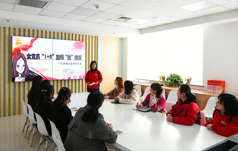 在活动现场,女党员们首先观看了荣获全国脱贫攻坚楷模张桂梅的感人事迹,学习她燃烧自己、照亮别人,四十年如一日的执着与奉献,参会党员深受感动。随后,大家共同学习了《促进工作场所性别平等》《女职工权益维护案例集》部分内容,进一步增强女职工法律意识,提高女职工维护合法权益能力。