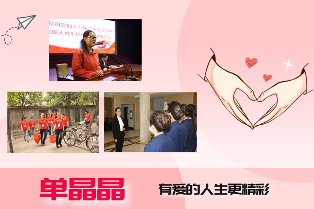在工作中,单晶晶是负责人,也是老大姐。她用人性化的管理、亲情般的关怀,调动了员工的工作热情,上下一条心,拧成一股绳,使得餐厅、客房服务工作得到全面提升。