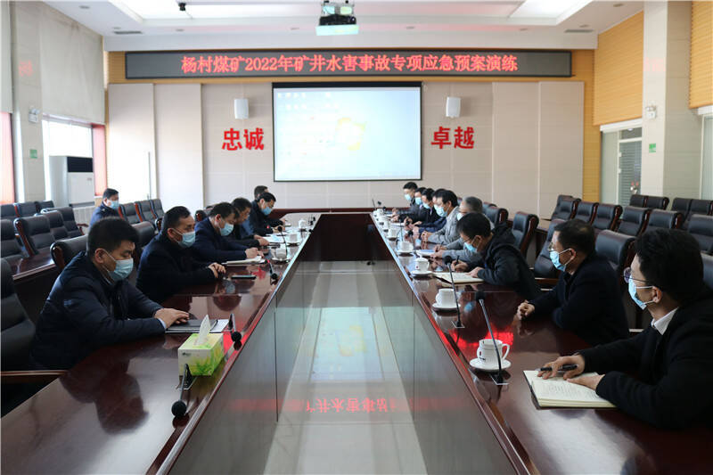 3月22日,杨村矿组织进行2022年水害事故专项应急预案演练,检验发生水害事故后的组织指挥、调度协调、应急反应能力,提高井下作业人员避灾能力。