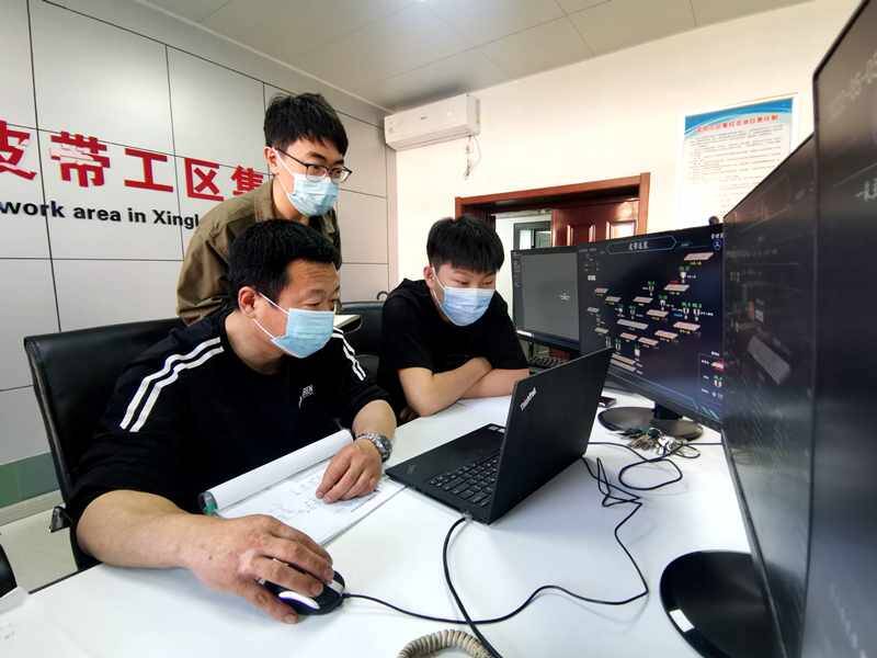 通过兴隆庄煤矿井下原煤运输地面集控室的屏幕,可以直观地掌握原煤输送轨迹:相关数据一目了然,立体化图层实时展现运行情况,运输皮带滚滚向前,源源不断地将原煤输送至煤仓,犹如一条永不停歇的“大动脉”。而在这背后,都离不开一支原煤运输系统智能化升级改造团队的辛勤付出。