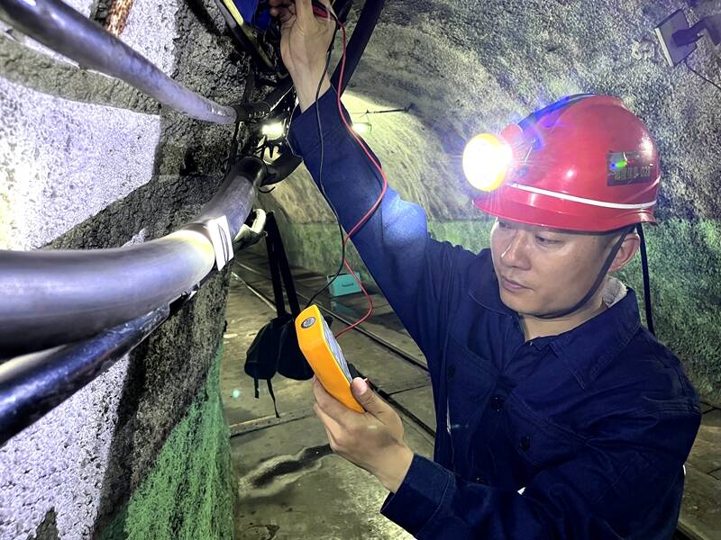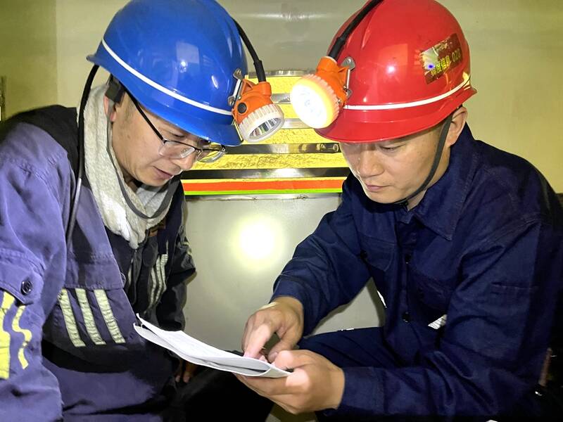 有次下早班,他在处理完当班工作准备上井时接到电话,得知10309工作面两个甲烷传感器信号时通时断,闭锁了整个工作面的电源,已经影响正常生产。他和工友急忙扛着梯子往回赶,排除了传感器的问题后,面临的就是体系庞大的线路,两人扛着梯子沿皮带路一点点捋信号线排除故障,走一段、停一下,上梯子、下梯子,部分放煤泥厚,一脚踩进去都走不出来,1000多米的路,两人理了两个多小时,终于找出煤巷侧壁压力大造成的两处传输线路损伤,处理完故障,上井已是晚上7点多。
