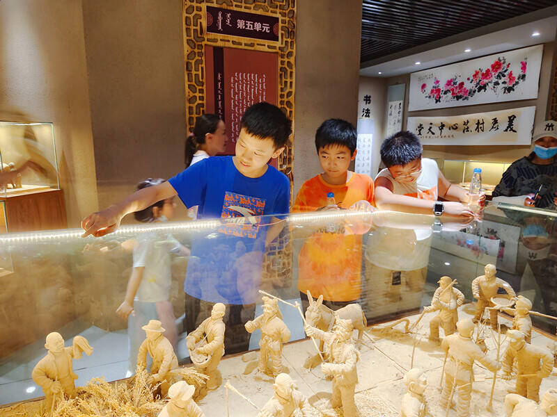 在农耕文化展览馆,工作人员和家人的细心讲解下,孩子们了解了传统的农耕文化,认识了五谷和各类农具。除此之外,孩子们还通过365行人物泥像和24节气农忙情景中个性鲜明、表情独特的泥塑人物中感受到了农耕文化的魅力。让孩子们对传统农耕文化有了新的认知,激发了孩子们对劳动的热爱。