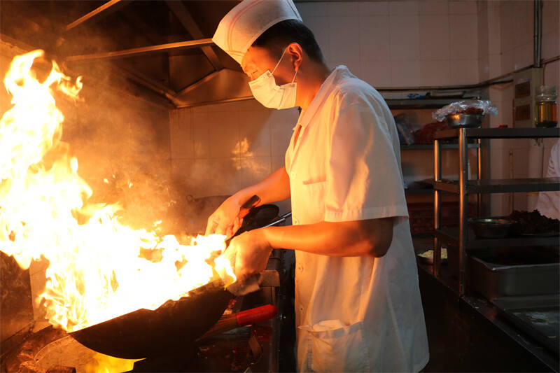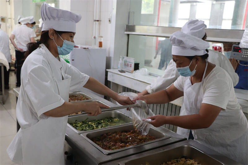 同时,该单位根据疫情变化,调整防控措施。食堂设置单向出入口,实行出入口分离,安排值勤人员维持秩序,保持好安全距离,有序取餐;增加售饭窗口,尽可能缩短排队时间,加大对环境卫生消毒消杀、原材料食材的安全管控,尽全力为职工解决就餐过程中出现的问题。