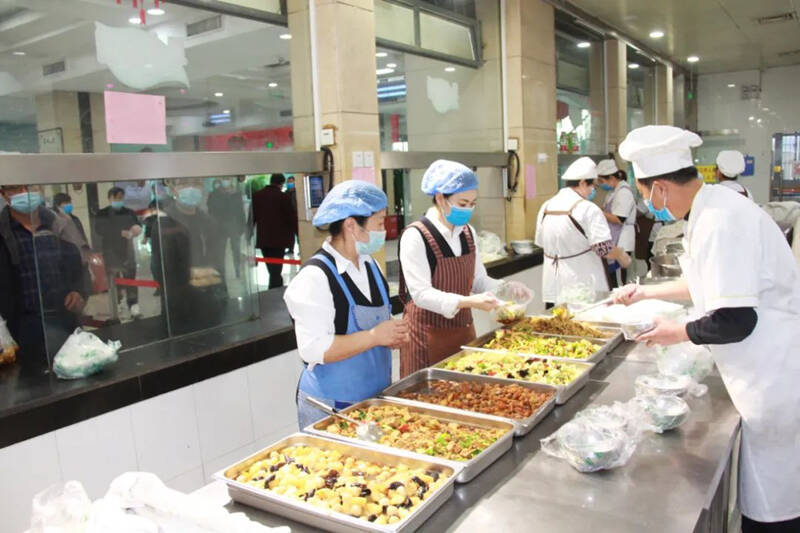 该矿餐饮中心副主任庞道亮介绍,目前职工食堂需要保障2300多名留勤职工的三餐需求,既要保证饭菜数量和花样,还要确保疫情防控安全,给工作带来不小的挑战。“物资领取、消杀,人员分工、调配,餐食分发、配送,疫情管控、核酸检测,每一个细节都要严格遵守疫情防控规定。”庞道亮说道。白天保障配餐,晚上开会讨论疫情防控的措施,收集职工对餐食的问题反馈,改进提升工作,这是庞道亮每天的“规定动作”。