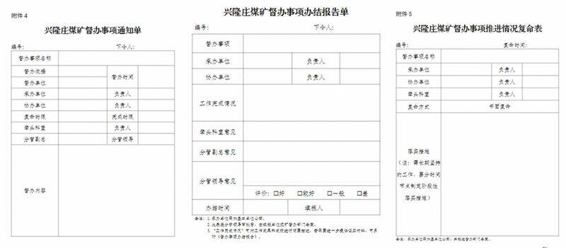创新推行“一请示”“四通知”“两汇报”的“142”精准督察工作模式。即,督办单位梳理工作后,向领导请示哪几项工作需要纳入督办,确定督办事项;督办通知单下发承办单位纸质版的同时,通过当面汇报、微信等途径,将通知单同时发给牵头部门、牵头副总和分管领导,避免有关部门和领导对工作任务掌握不清;承办单位复命和办结两个环节,分别向发令领导汇报,由发令领导根据完成成效,按照“好、较好、一般、差”四个等级进行评价。该模式避免了督察工作面广线长导致重点不突出的问题,也能使发令领导及时准确掌握工作推进情况,真正把“强执行、抓落实、促闭环”的工作作风贯穿始终,让考核“指挥棒”最大限度的激发矿井发展活力。