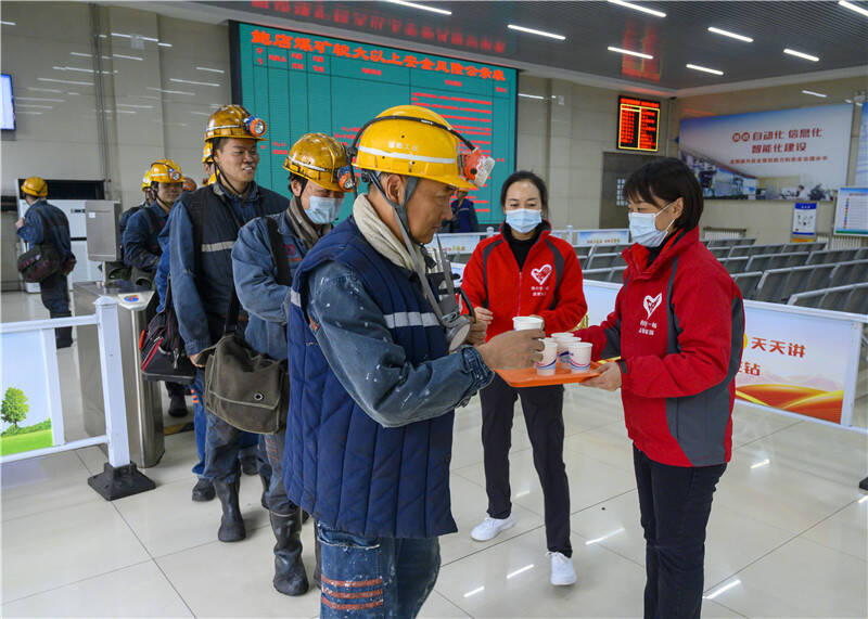 女工协管员为上下井职工递上一杯杯热气腾腾的中药汤,一边介绍道:“中药汤由7种药材熬制,可以有效预防流行性感冒……”自2022年8月16日起,这个矿工会女工委将提前熬制好的中药汤摆放在井口候罐大厅,为上下井职工提供24小时饮用服务。
