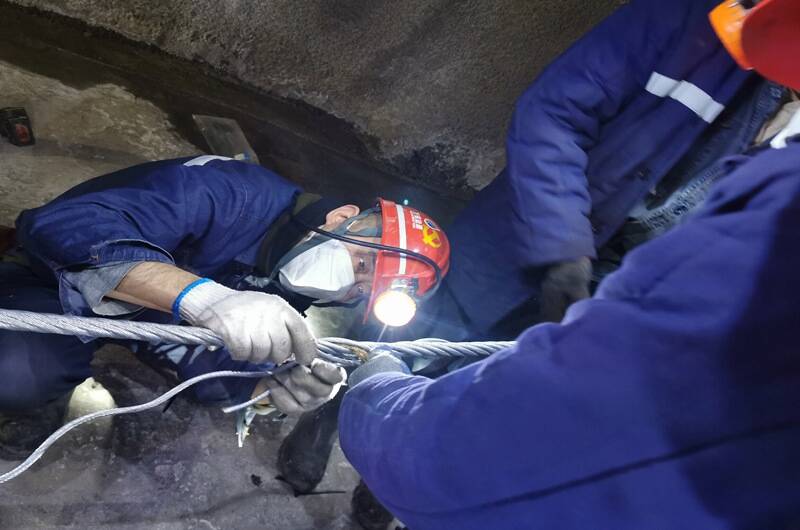 该公司施工人员克服井口温度低、风速大、现场作业空间小的困难,集中力量、分工协作,历时28小时,完成对矿井主井提升钢丝绳进行首次更换。