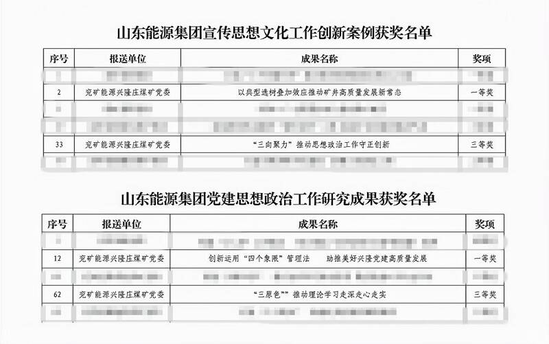 近日,在山东能源集团党委“宣传思想文化工作创新案例和党建思想政治工作研究成果”评选中,兴隆庄煤矿收获颇丰。其中,“以典型选树叠加效应推动矿井高质量发展新常态”“创新运用‘四个象限’管理法 助推美好兴隆党建高质量发展”分别荣获山东能源集团宣传思想文化工作创新案例和党建思想政治工作研究成果一等奖。