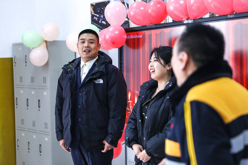 站在我们面前仍有几分军人气质的高大小伙儿名叫王家伟,是物流公司2022年新入职大学生。2月14日,他和未婚妻在邹城市民政局登记结婚,当了解到双方父母都无法前来,只有一对新人独自登记领证的情况时,王家伟所在的单位——物流公司电务段的同事们一合计,干脆当回“家里人”,为两位新人做一次“爱的见证”。