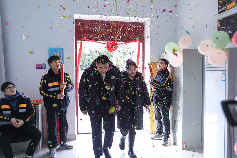 这是近三年来物流公司入职大学生中第一对携手步入婚姻的,必须给足仪式感。大家伙儿特意地把见证地点放在了劳模大师工作室,这是王家伟步入社会,开始学习和工作的地方,是新希望的起点,对他有着特殊的意义。