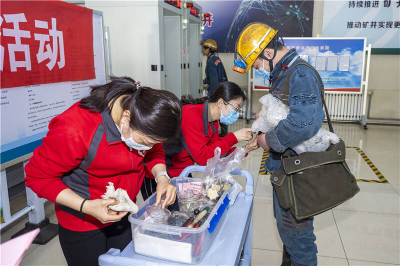 拓展候罐大厅主阵地,井口惠工驿站周周有活动。根据季节特点和矿井工作重心,在井口广泛开展“春送安全花、夏送清凉瓜、秋送平安果、冬送热姜茶”安全服务活动,组织协管员自编自演文艺节目、送平安果、发放安全宣传材料,叮嘱一线职工时刻筑牢安全防线。特别是疫情期间以及安全生产等特殊时期,设计开展“携手抗疫,惠工同行”“‘疫’路有爱、温暖同行”井口嘱安全活动,分别为早中晚班的职工送去爱心水果,缝补工作服,并叮嘱他们时刻牢记安全生产,遵守疫情防控特殊时期矿井各项规章制度。每次有奖问答环节,下井职工师傅都积极踊跃参与,在轻松愉快的氛围中收获了安全知识。