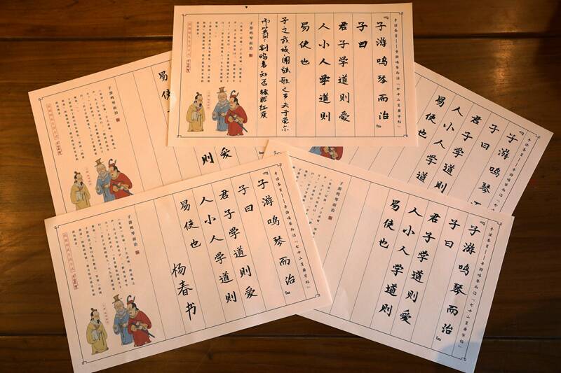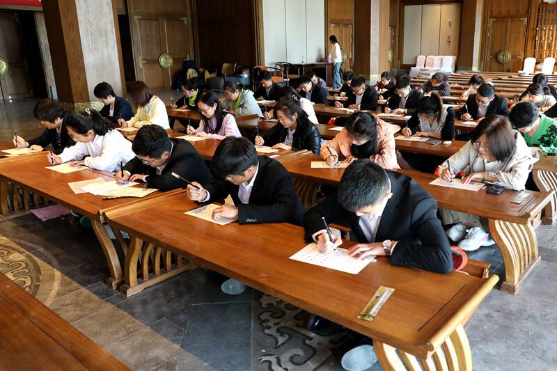 “手读论语”环节,研学人员手握毛笔、心意合一,在一笔一画中细品书法神韵,在一撇一捺间传承翰墨书香。