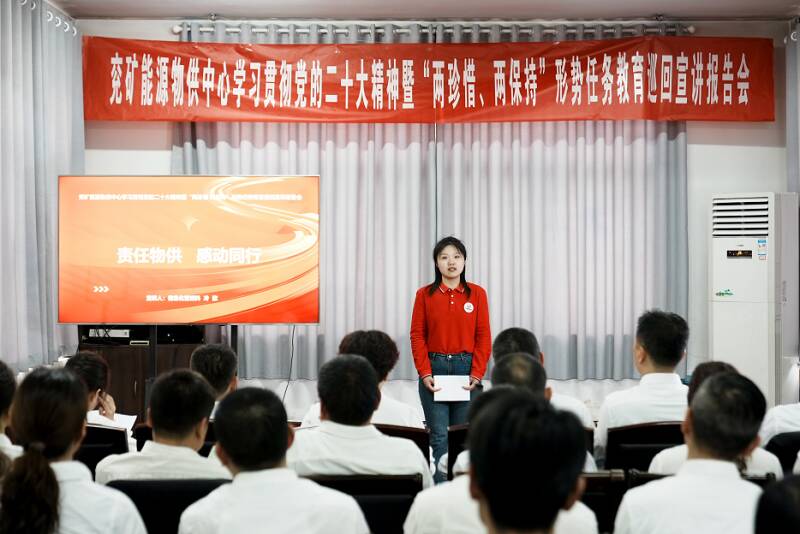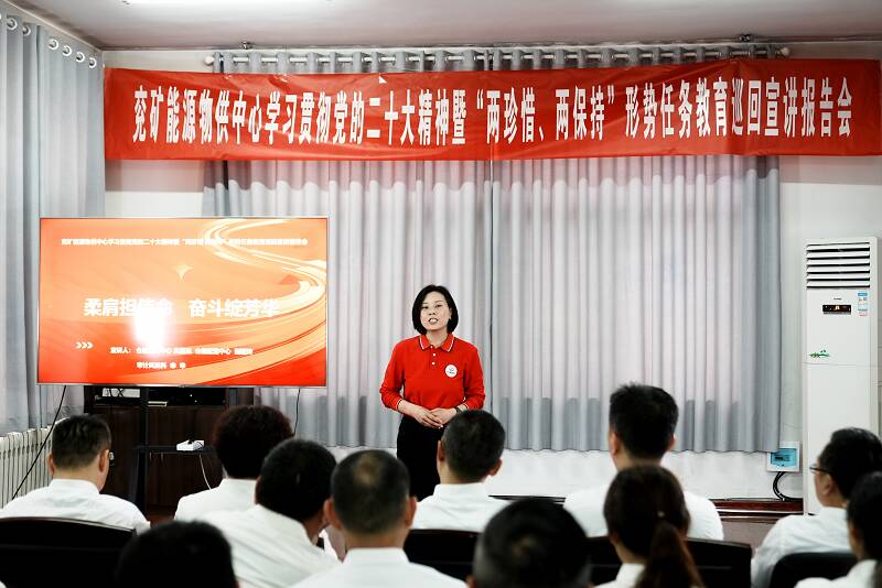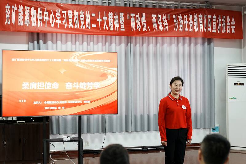 “2022年,兖矿能源市值突破两千亿大关,荣登全球矿业市值50强……”她向职工宣讲两级公司的靓成绩,不忘表一表物供人的辛苦付出:“业绩频传捷报,市值再创新高,兖矿的光荣榜上又怎能少得了我们物供人的身影。”一语道出在场干部职工的自豪感使命感。