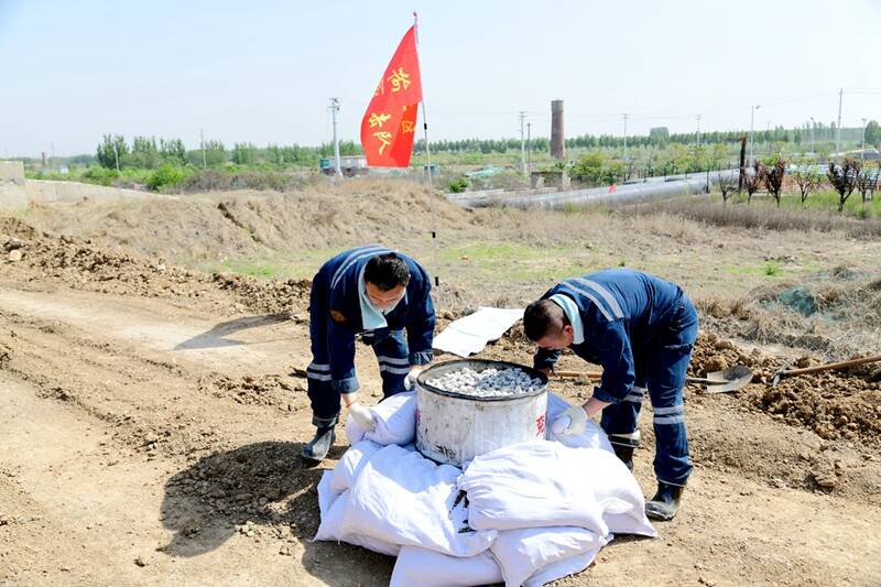 演练模拟济三煤矿值班人员巡堤时,发现洸府河水位达到警戒水位,有漫溢危险!接到险情报告后,矿防汛应急指挥部立即启动《南四湖湖东堤兖矿能源集团股份有限公司济宁三号煤矿采煤沉陷段防汛抢险预案》,同时汇报公司调度指挥中心、太白湖新区防指。总指挥立即下达防汛抢险调度指令,部署抢险任务。