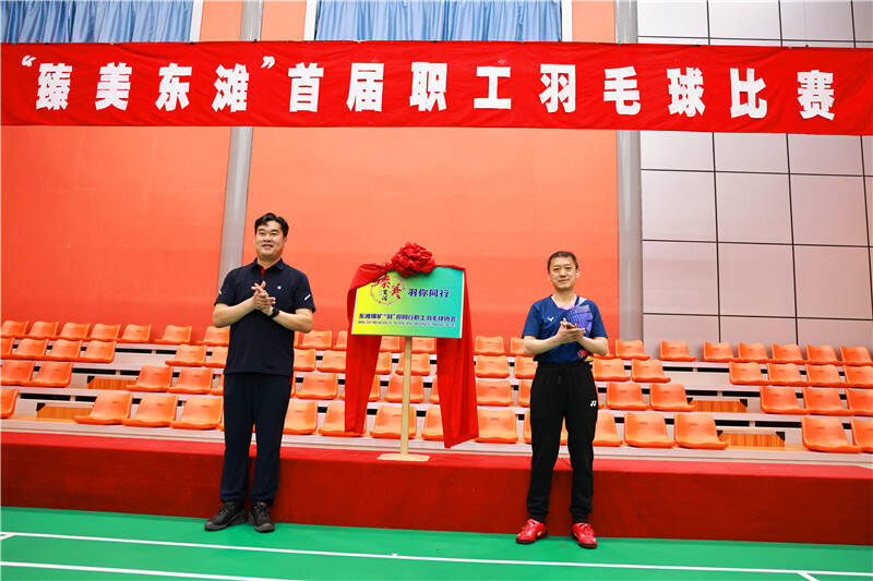 仪式上,该矿党政领导共同为东滩煤矿“羽”你同行职工羽毛球协会成立揭牌。