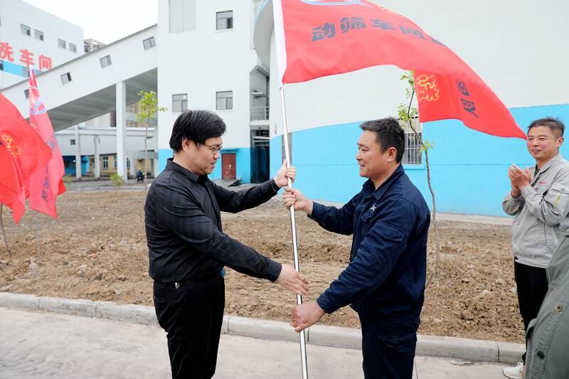 “接过旗帜,就是接过重托与使命!接过旗帜,就代表着责任与担当!我们必将发扬主人翁精神,持续开展‘全员创新·岗位增效’活动,优化工艺流程、提升产品质量,更好地为矿井提增效益!”