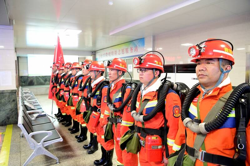 随着防洪警报声响起,由各单位组成的防洪抢险、医疗救护及防洪应急车队按照现场警戒、重要场所封堵、医疗救助、现场救援任务,迅速奔赴指定地点展开救援工作。与此同时,井下所有人员按照避灾路线有序撤离。
