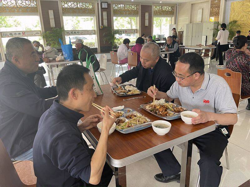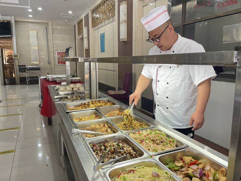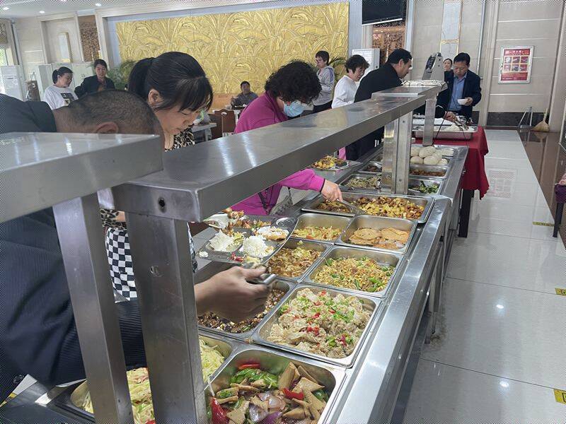 “今天的10元自助餐,品种多,口感好,吃得饱饱的。这样的职工食堂简直是幸福感爆棚。”兴安街上两名职工边走边谈刚刚的伙食,满脸笑容。