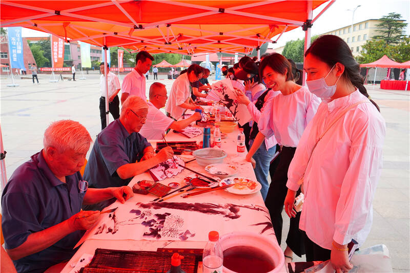 翰墨传情书安全,丹青助力生产月。与旁边的喧嚣不同,兖矿能源老年书画协会的艺术家们紧扣“安全”主题,既优雅又激情地创作着书画作品。只见他们挥毫泼墨,将自己的安全祝福、安全思索凝于笔端、落于纸上,为职工们送上了一道充满“安全味”的文化大餐。现场职工表示,既有文化艺术品可以领,又能学到安全知识,这样的宣传形式非常接地气,很受益。