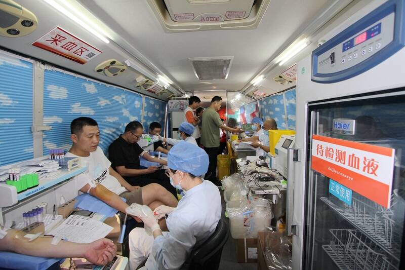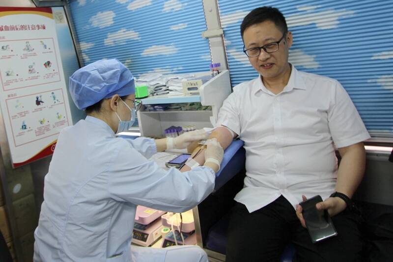 在活动现场,前来献血的职工自觉排队,在青年志愿者的引导下有序填写献血登记表格,积极配合工作人员进行初筛检验、采集血样,符合献血条件的人,依次进入献血区,耐心倾听工作人员讲解献血常识及注意事项,有序进行献血。