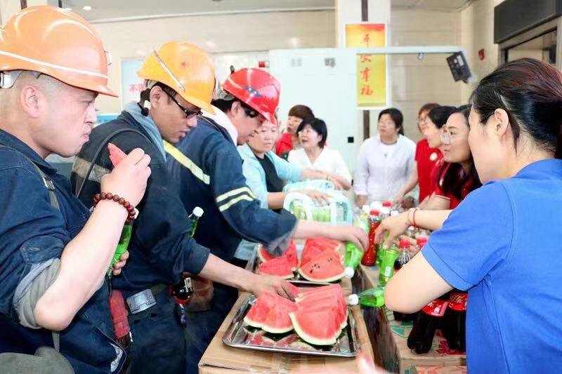入夏以来,该矿把做好职工防暑降温工作抓在手上、放在心上,开展“送清凉嘱安全”、“夏送清凉、情系端午”女工协管服务、“炎炎夏日、有你真甜”志愿服务等活动,把饮料、西瓜、“清凉大礼包”等物品送到一线和岗点,并组织文艺骨干表演歌曲、舞蹈、朗诵等文艺节目,抒发赞美、表达祝愿,亲人般的关爱提升了广大职工的幸福感、获得感和满足感,增强了战高温、斗酷暑的斗志。