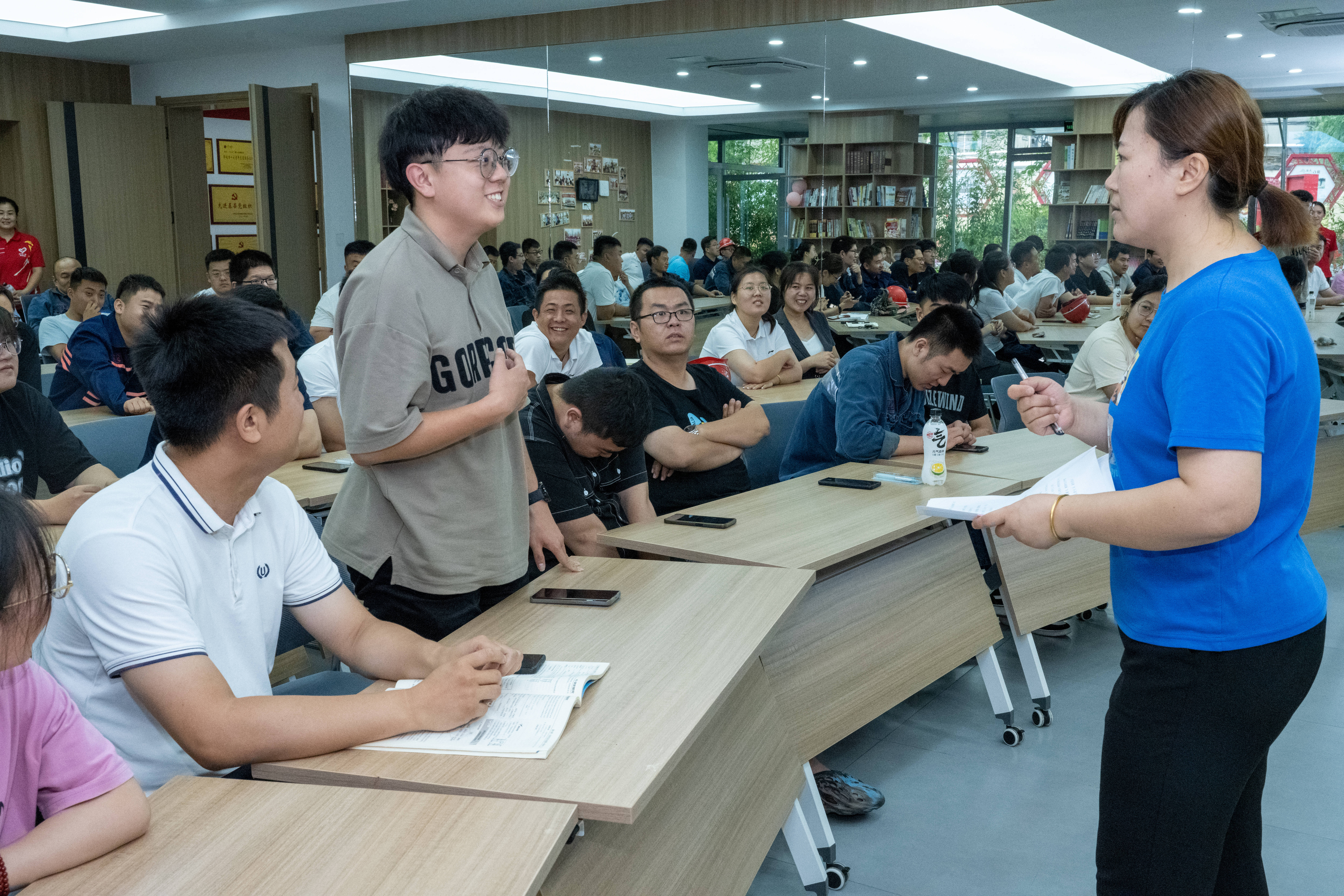 除了基本安全知识,青安岗员们对企业文化知识也是信手拈来,但凡回答的人有一点犹豫,下面的人接着就能补全正确答案,主持人直感叹什么都难不住大家。